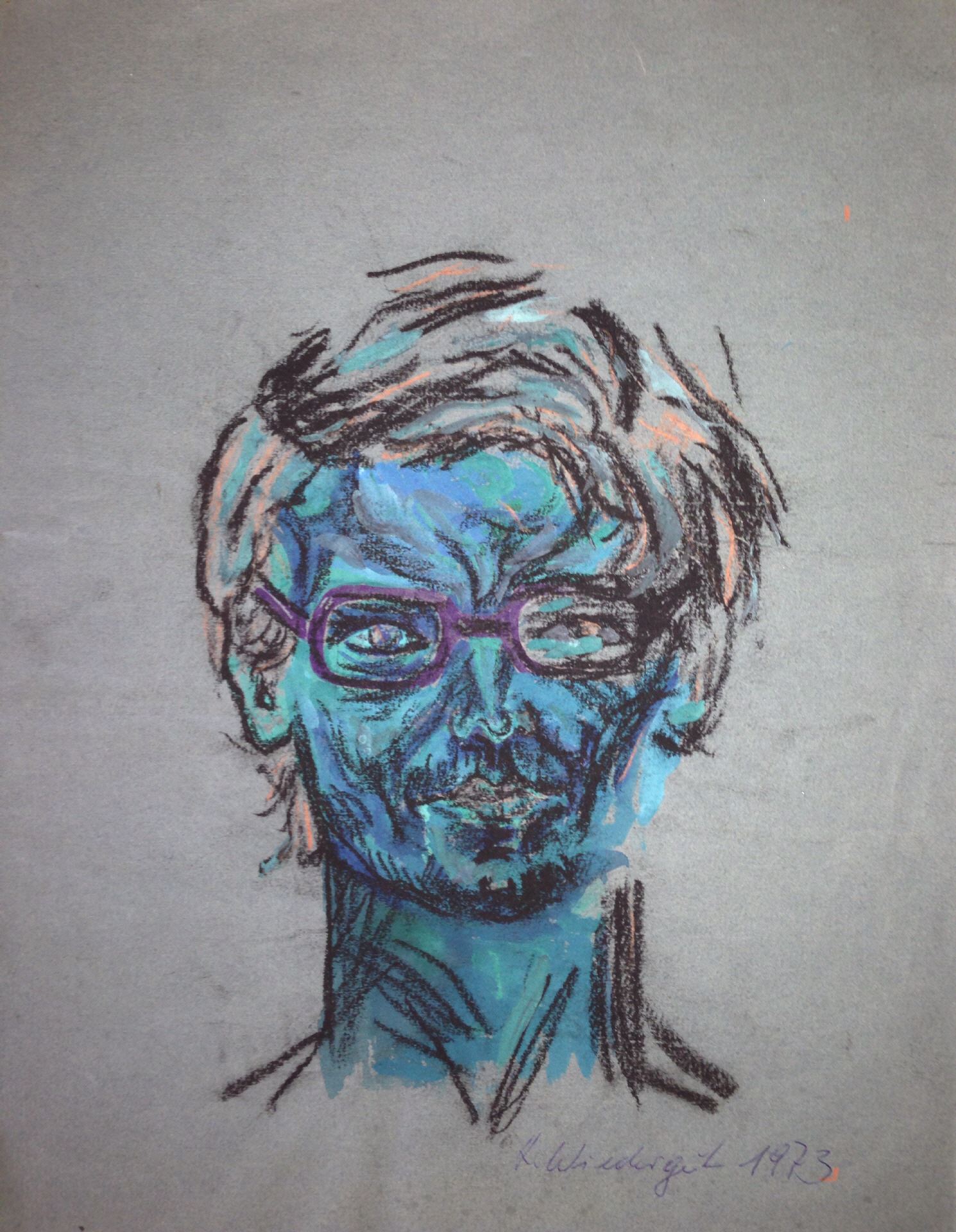 Selbstportrait 1973, Pastelkreide auf Papier, Höhe: 31 cm, Breite: 24 cm