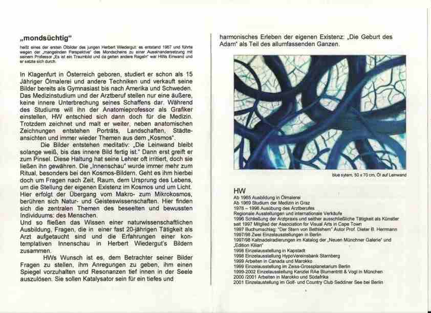 Die Ausstellung erfolgte auf Einladung des damaligen Direktors des Zeiss-Großplanetariums und der Archenhold-Sternwarte, Pof. Dr. Dieter Hermann's. Eröffnet wurde die Vernissage mit einer Lesung von Mo Schwarz und Dieter Kirchlechner.