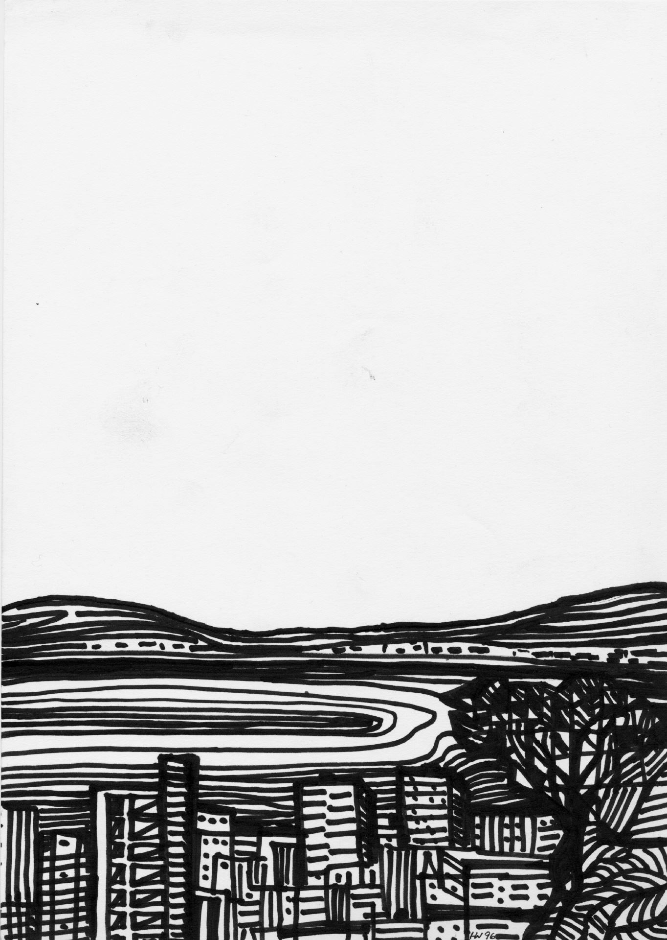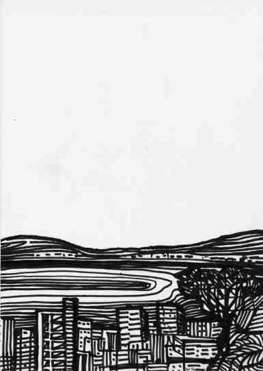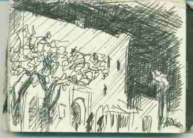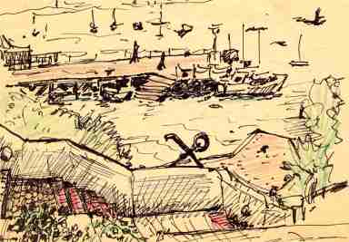 Kieine Reiseskizze in Tusche auf Papier.