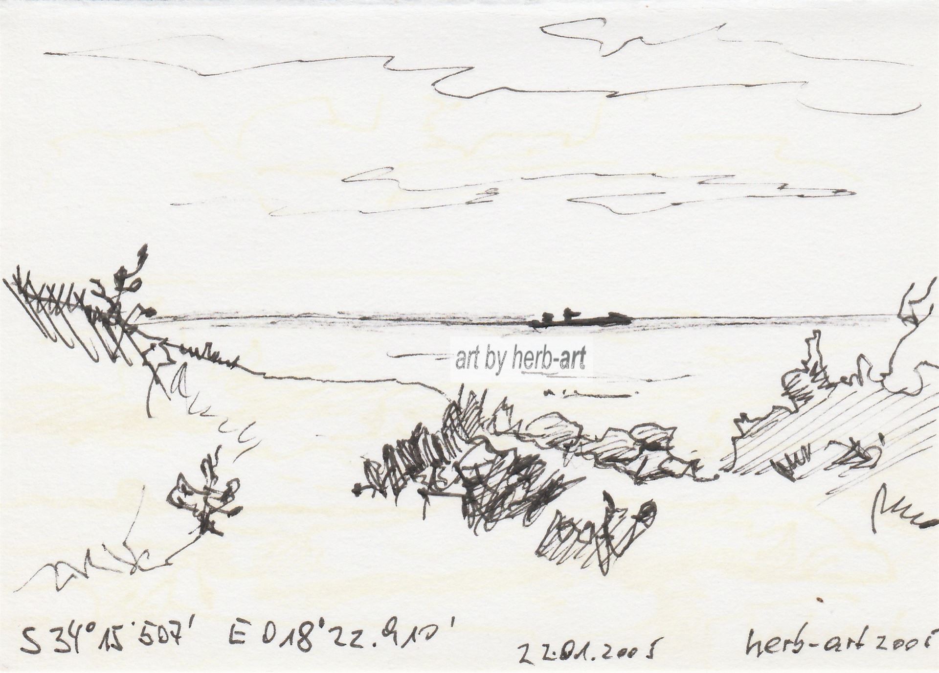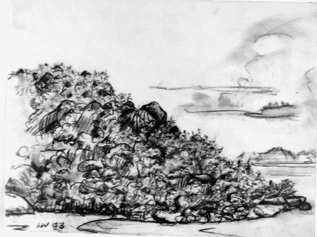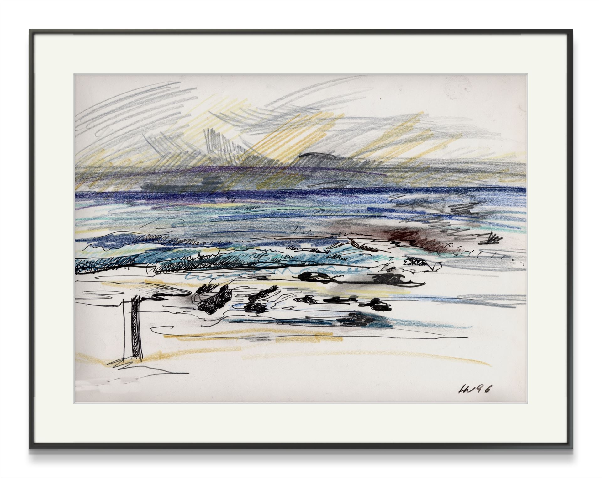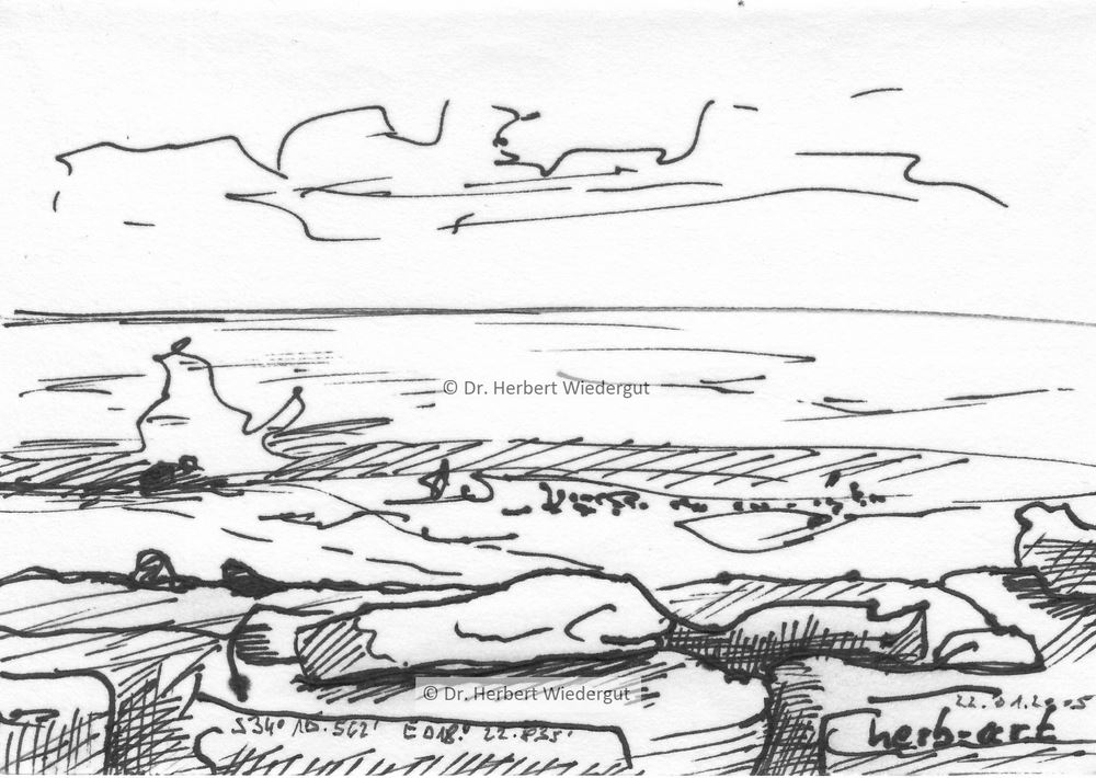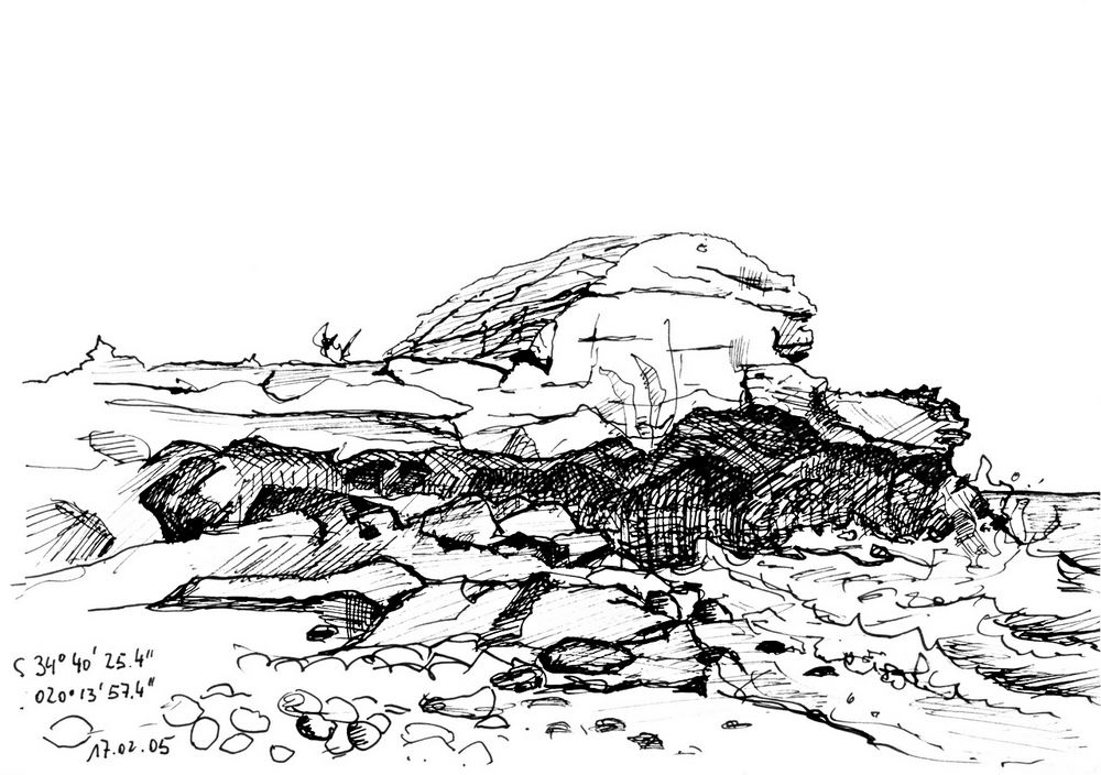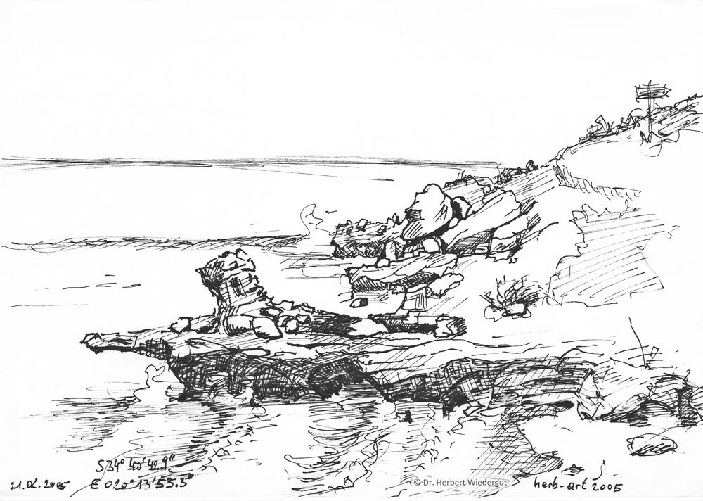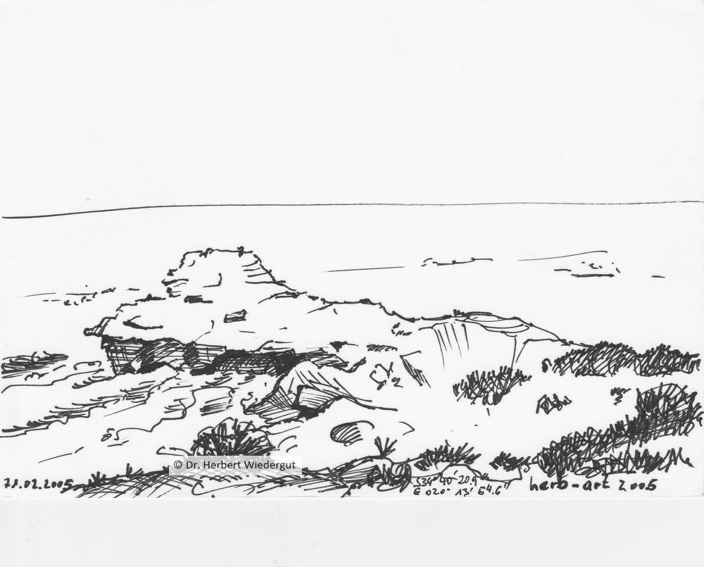 Farbstiftzeichnung am Ufer der Table Bay in Cape Town. 1996