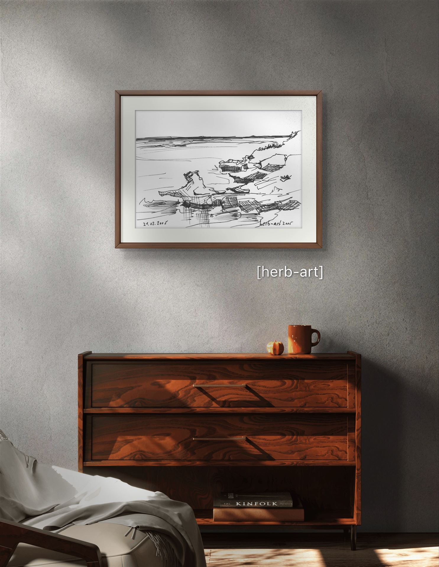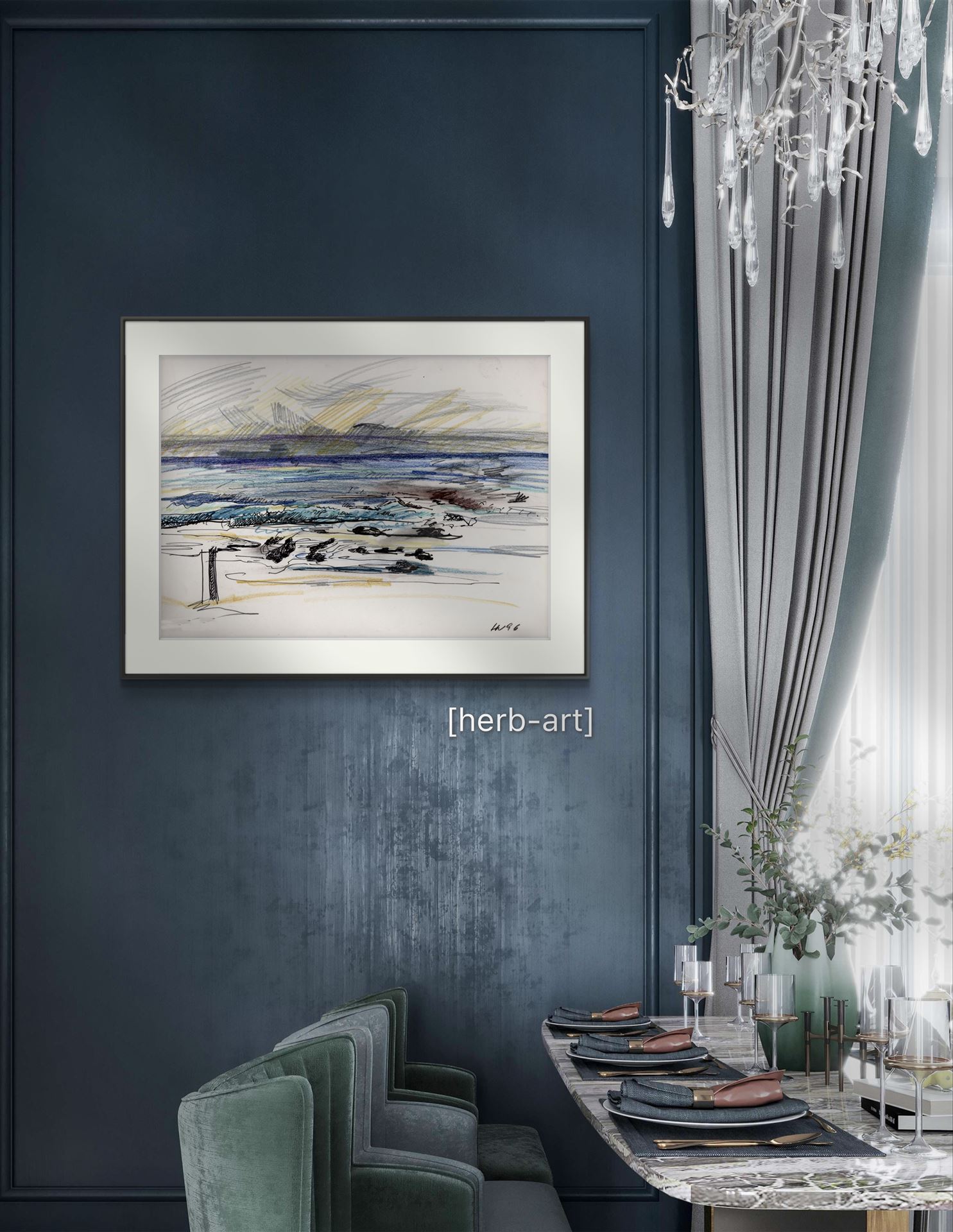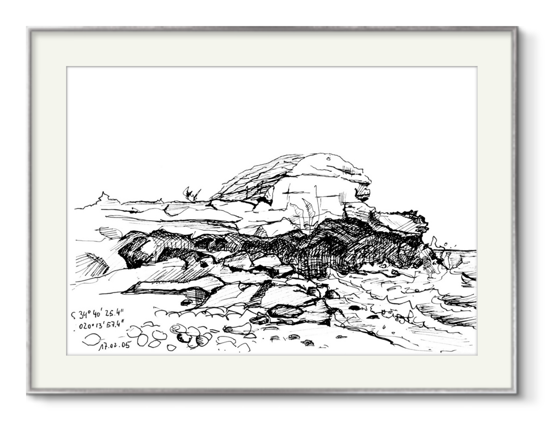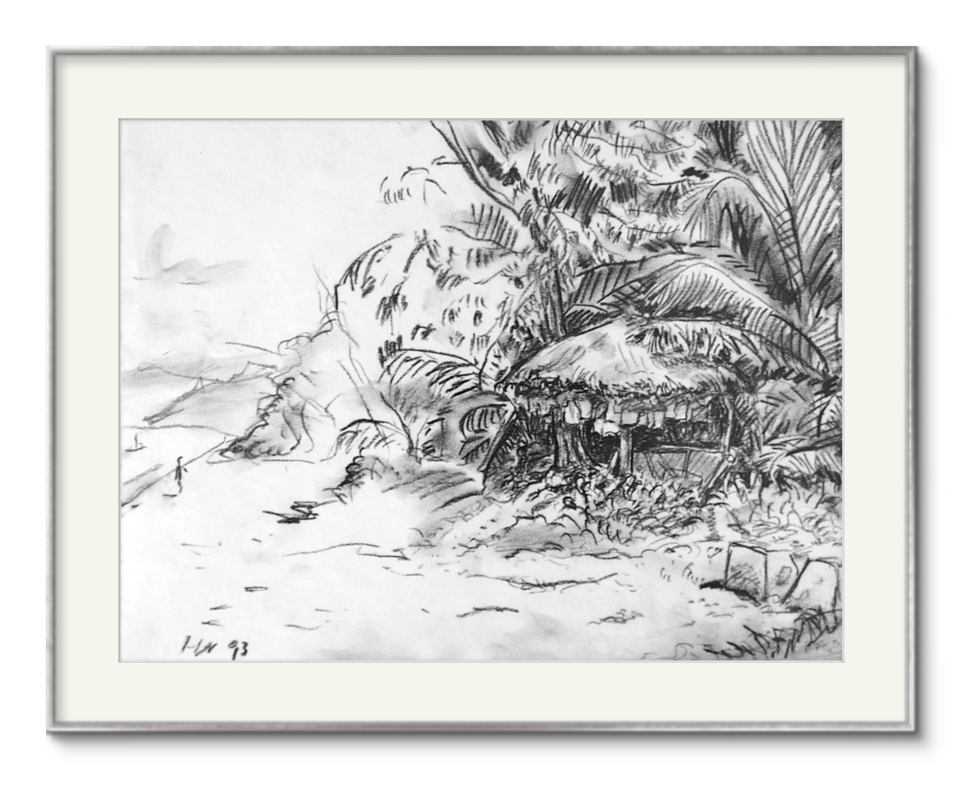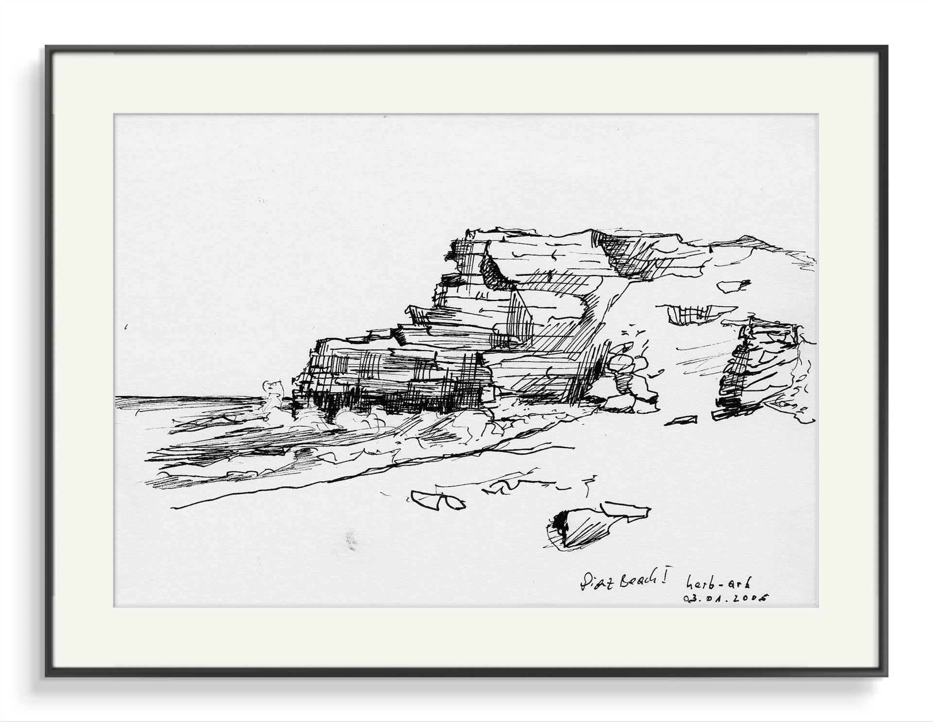 Farbstiftzeichnung am Ufer der Table Bay in Cape Town. 1996